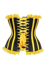 Black/Yellow Satin Boned Burlesque Overbust Waist Corset Bustier Top For Women