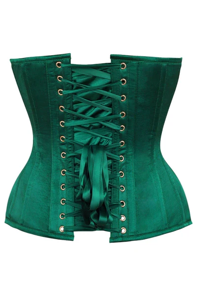 Dark Green Satin Steel Boned Overbust Waist Corset For Women