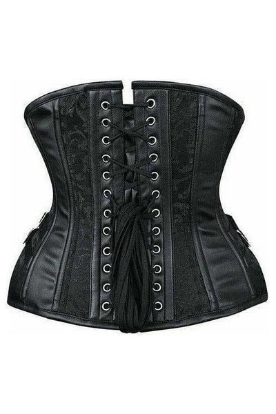 Gothic Black Brocade Steel Boned Underbust Steampunk Corset w/Buckles – Elegant Waist Trainer for Timeless Silhouette