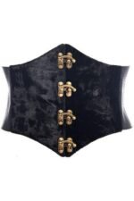 Lavish Black Faux Leather Underbust Corset Belt Cincher Gold Clasps
