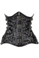 Introducing the Gothic Waist Curvy Black Steampunk Steel Double Boned Under Bust Corset, a masterpiece of craftsmanship and confidence. Designed to embody Victorian sophistication with a modern edge, this underbust corset merges premium faux leather, ornate brocade fabrics, and functional buckle accents to create a striking look that blends elegance, power, and individuality.
