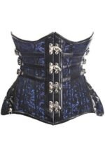 Introducing the Gothic Waist Curvy Black/Blue Steampunk Steel Double Boned Corset, a masterpiece of craftsmanship and confidence. Designed to embody Victorian sophistication with a modern edge, this underbust corset merges premium faux leather, ornate brocade fabrics, and functional buckle accents to create a striking look that blends elegance, power, and individuality.