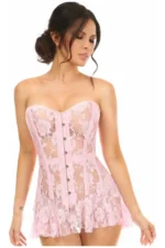 Lavish Pink Sheer Lace Corset Dress Sexy Bridal Lingerie For Women