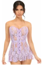 Lavish Purple Sheer Lace Corset Dress Sexy Bridal Lingerie For Women